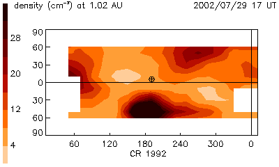 There is a large density enhancement seen moving south of the Earth on July 29.